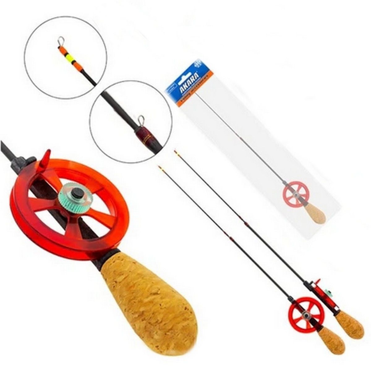 Вудка зимова телескопічна Akara Ledeer M 455 - З котушкою - З кільцями - Red