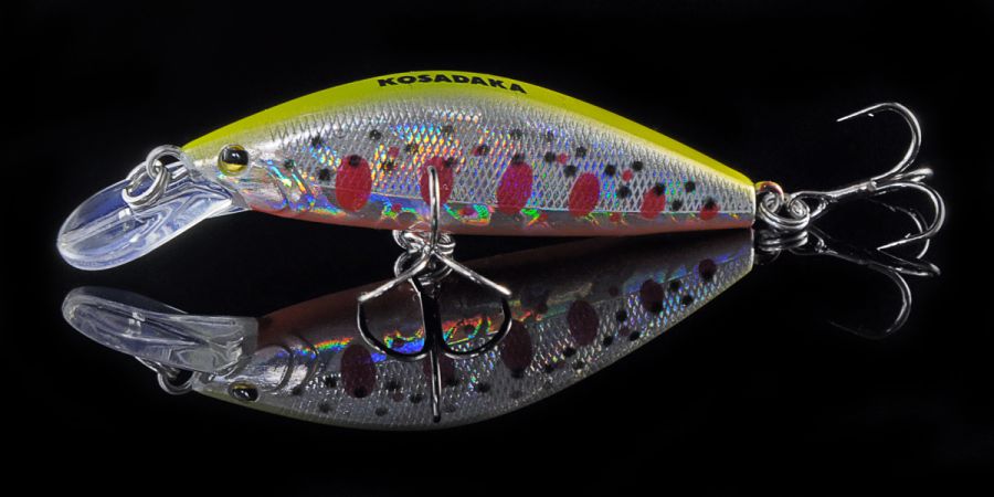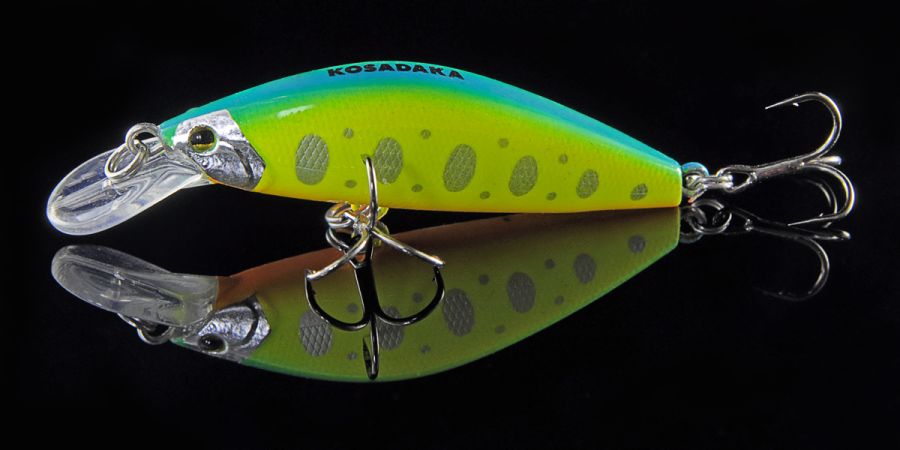 Воблер Kosadaka Cron володіє непоганою аеродинамікою і здатний справлятися з незначною течією. Спереду розташована пластикова лопатка округлої форми. Вище передбачена кріпильна петля з заводним кільцем. Якщо для захисту від щучих зубів Ви віддаєте перевагу повідку, в цьому випадку необхідно підбирати невеликий і не важкий. Робочий горизонт заявлений в межах від 70 сантиметрів до 1,4 метра. Довжина цієї моделі становить 50 міліметрів, а вага дорівнює всього 3,5 грама, тобто, як і говорилося раніше, знадобиться снасть класу ультралайт. Але позитивна ступінь плавучості допоможе обловити самі мілководні ділянки водойми або обійти підводні перешкоди, просто уповільнивши або зовсім зупинивши проводку.