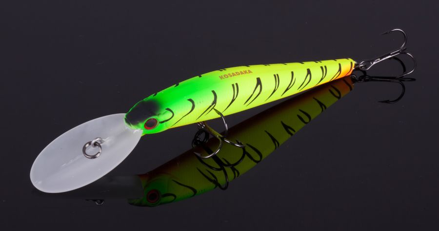Воблери Kosadaka Ion DD 130F відносяться до однієї з найширших серій виробника Іон. Дана модель є найбільшою у своїй лінійці, її довжина становить 130 мм, вага – 27 г. Приманка має класичну форму мінноу, габаритну лопасть, що сприяє заглибленню приманки під час підтягування.
