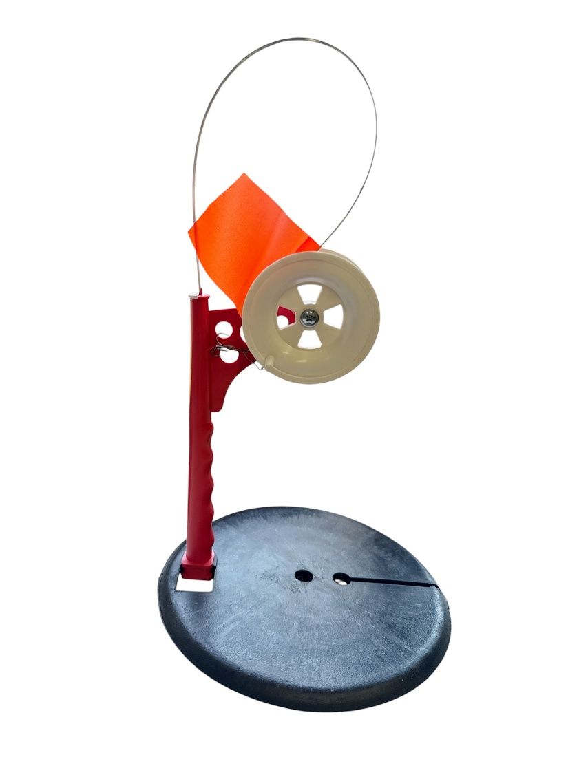 Жерлиця оснащена розбірна. Матеріал – морозостійкий пластик. Дуже зручна у складанні та при транспортуванні. Котушка оснащена гальмом і має спеціальні прорізи для кращого візуального контролю при спрацьовуванні. На стійці є отвори для фіксації гачка під час транспортування.